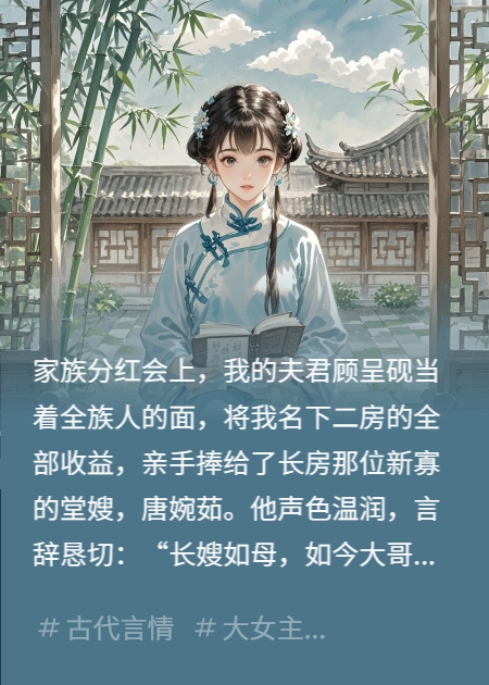 关于顾呈砚唐婉茹的内容在哪本小说里? [完结]小说《兼祧的夫君,偏心眼偏到了胳肢窝》的主角是【顾呈砚唐婉茹】,这是一本古代言情,大女主,婚恋,爽文,家庭小说,由才华横溢的“极道无界”创作,故事情节生动有趣。本站无广告,欢迎阅读!本书共计17485字,35章节,更新日期为2025-11-14。该作品目前在本网 【jwmcu.com】上完结。小说详情介绍:兼祧的夫君,偏心眼偏到了胳肢窝2025-11-14